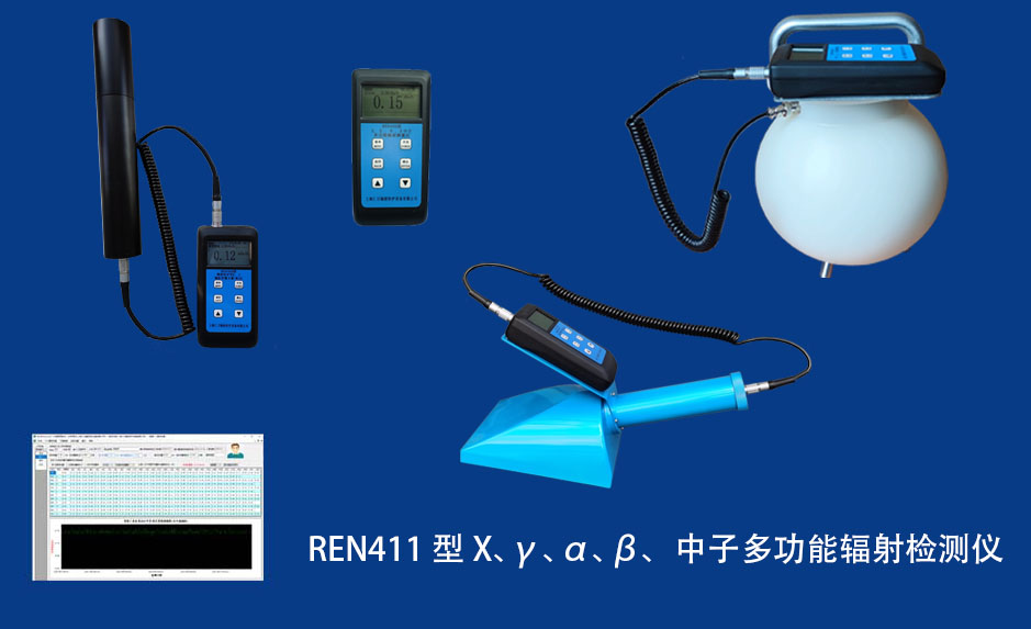 REN411型多功能輻射檢測儀是以內置高靈敏度蓋格計數管為探測器,外接不同類型的探頭來實現對低劑量χ、γ射線,高劑量χ、γ射線,α、β、中子射線的檢測。作為多功能輻射巡測儀,能顯示工作場所的輻射值,自動連續測量和記錄280萬條輻射劑量率數據,更換電池時,日歷、時間及檢測數據能永久保存。工作人員可以任意設定報警值,超閾值后自動發出聲音、震動和光報警。多功能輻射檢測儀適用于核設施、核技術應用單位、廢舊鋼鐵、防化部隊、 加速器、同位素應用、工業X、γ無損探傷、放射醫療、鈷源治療、γ輻照、放射性實驗室的輻射場調查及事故應急輻